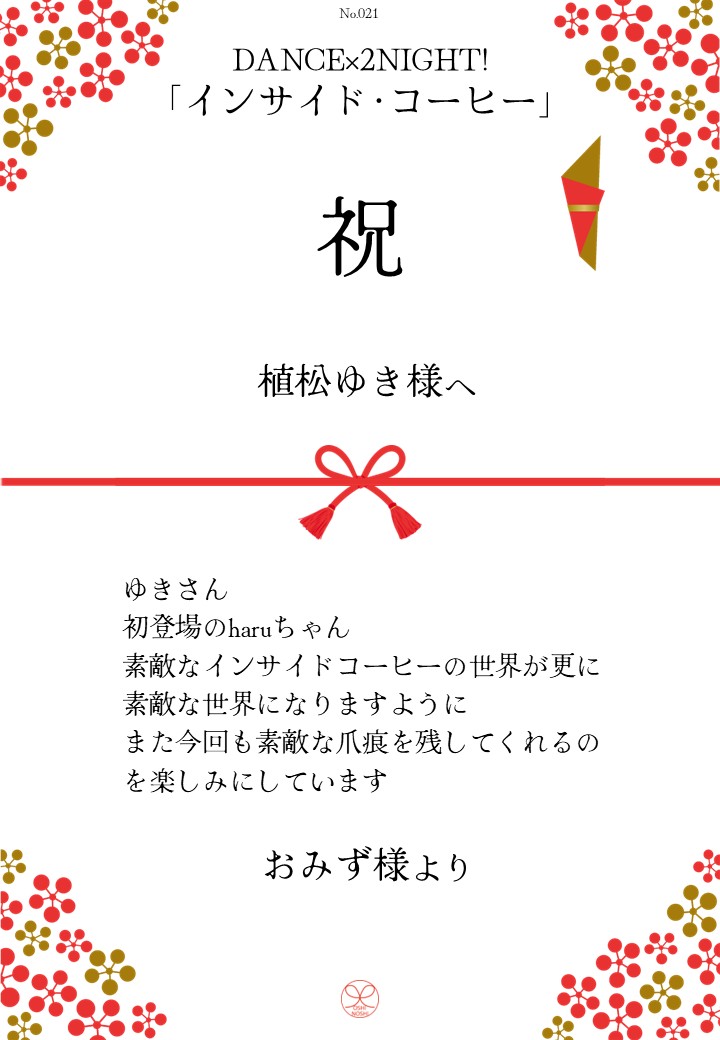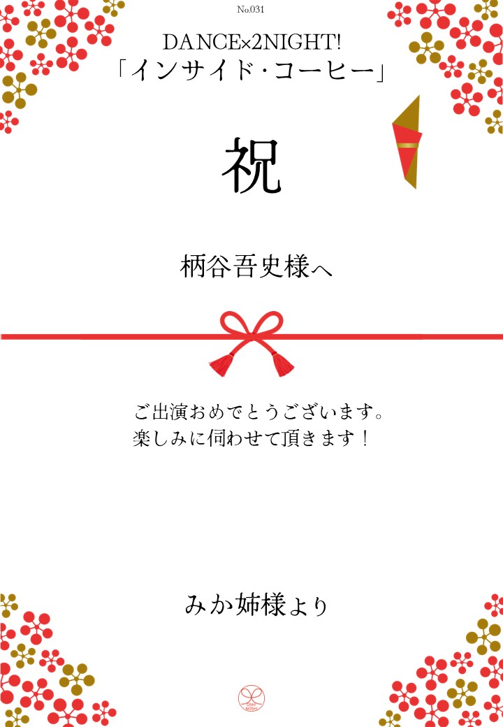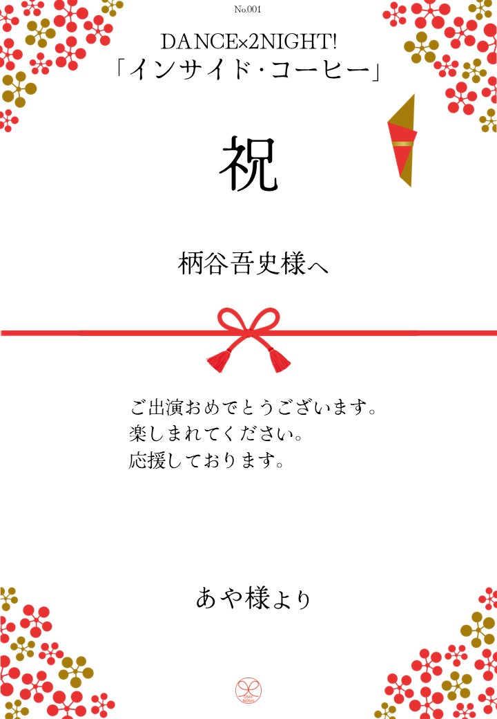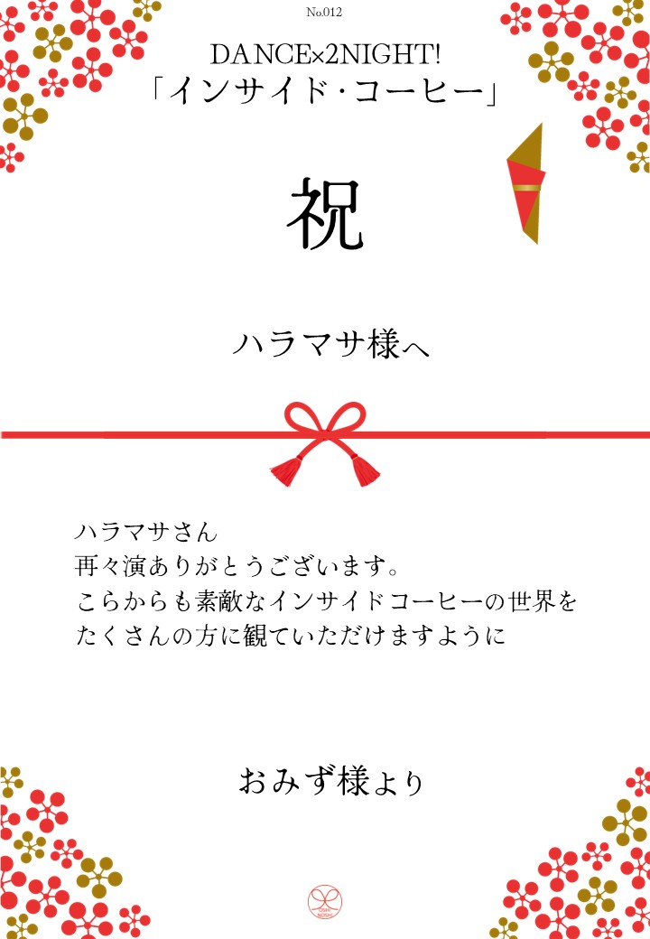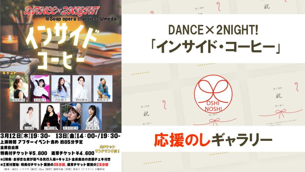 DANCE×2NIGHT!「インサイド・コーヒー」応援のしギャラリー 投稿日 2026年3月3日 更新日 2026年3月10日 著者 OSHINOSHI ギャラリーカテゴリ 公演応援のしギャラリー DANCE×2NIGHT!「インサイド・コーヒー」の応援のしを掲示します。 応援のし申込み 応援のし一覧 応援のし募集中です。 \ 応援よろしくお願いします /応援のしを申込む