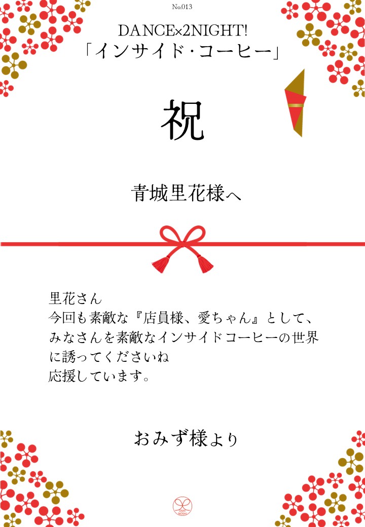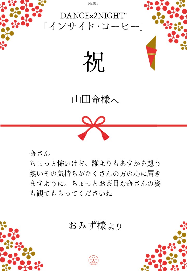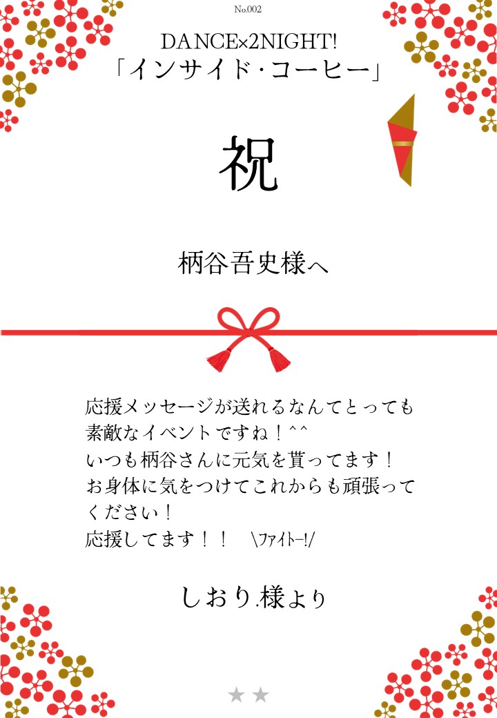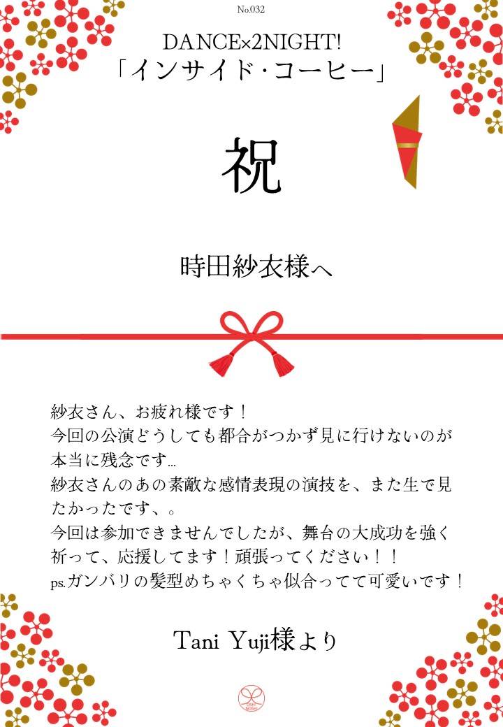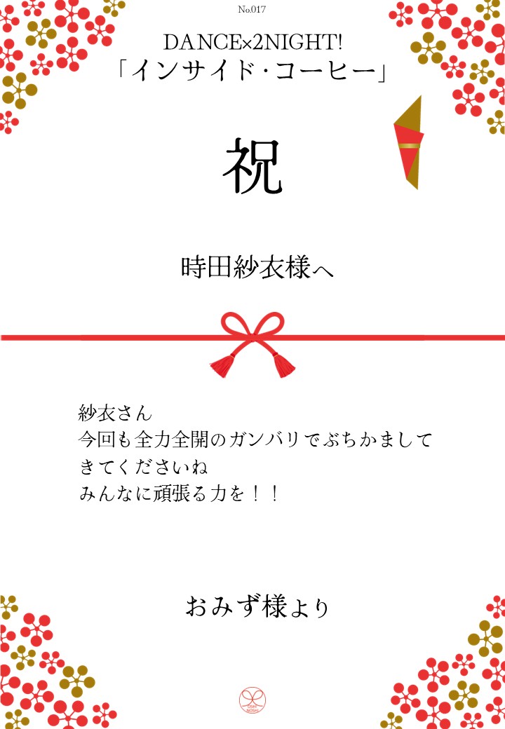 DANCE×2NIGHT!「インサイド・コーヒー」応援のしギャラリー 投稿日 2026年3月3日 更新日 2026年3月10日 著者 OSHINOSHI ギャラリーカテゴリ 公演応援のしギャラリー DANCE×2NIGHT!「インサイド・コーヒー」の応援のしを掲示します。 応援のし申込み 応援のし一覧 応援のし募集中です。 \ 応援よろしくお願いします /応援のしを申込む