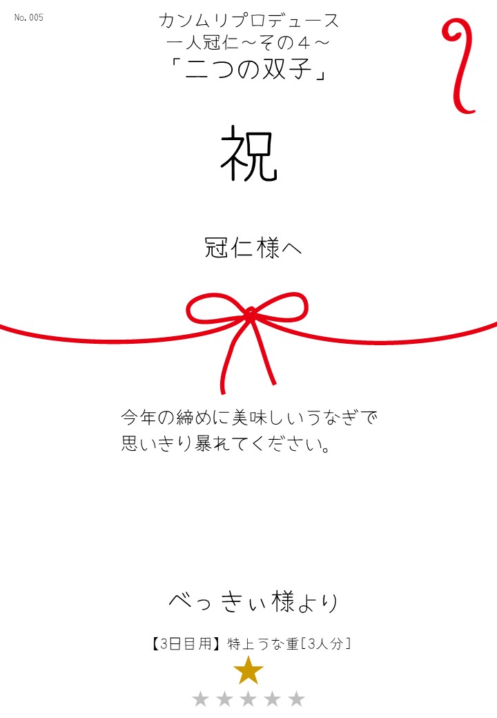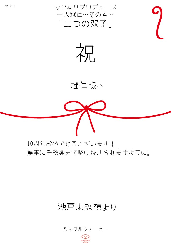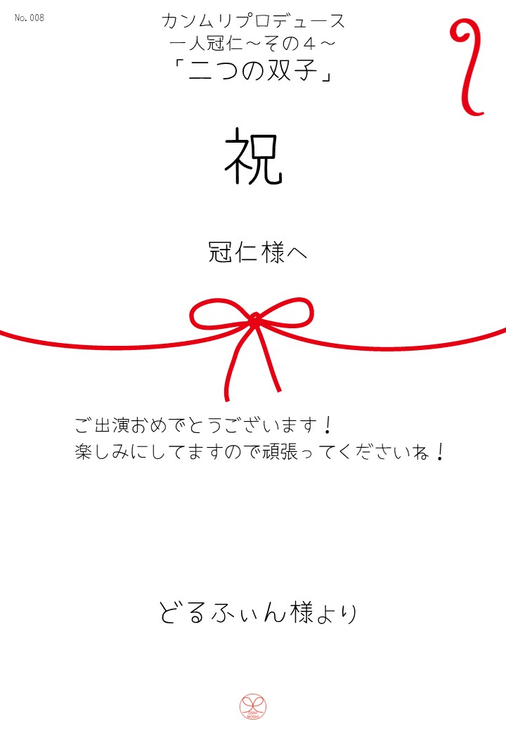 カンムリプロデュース 一人冠仁~その4~ 「二つの双子」のおしのしを掲示します。