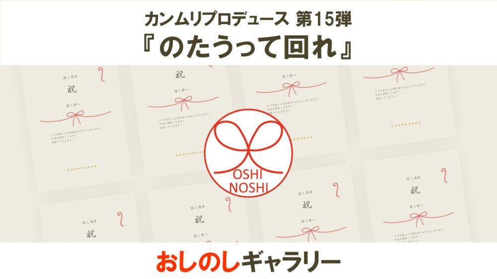 カンムリプロデュース第15弾「のたうって回れ」 おしのしギャラリー 投稿日 2025年12月25日 著者 OSHINOSHI ギャラリーカテゴリ 限定公開 カンムリプロデュース第15弾「のたうって回れ」のおしのしを掲示します。 おしのし申込み 公演詳細情報 応援のし一覧 2026年1月6日(火)18:00より受付開始です。 \ 応援よろしくお願いします /おしのしを申込む