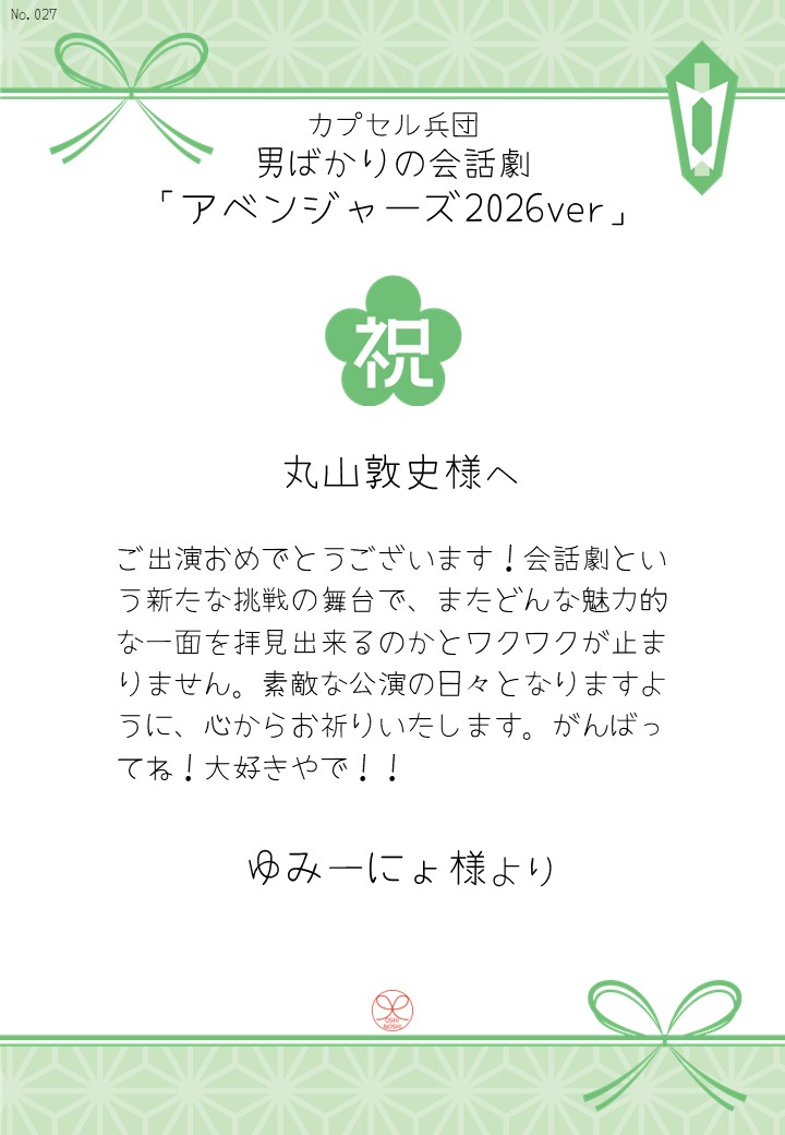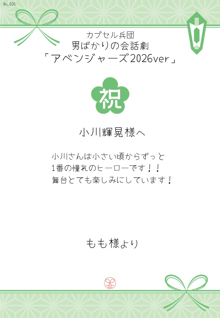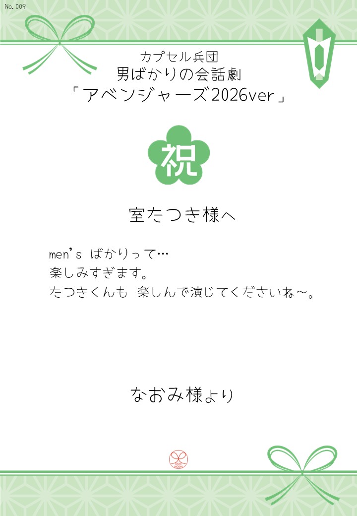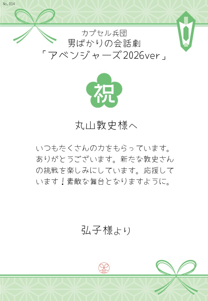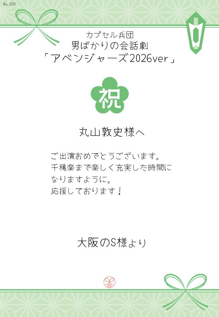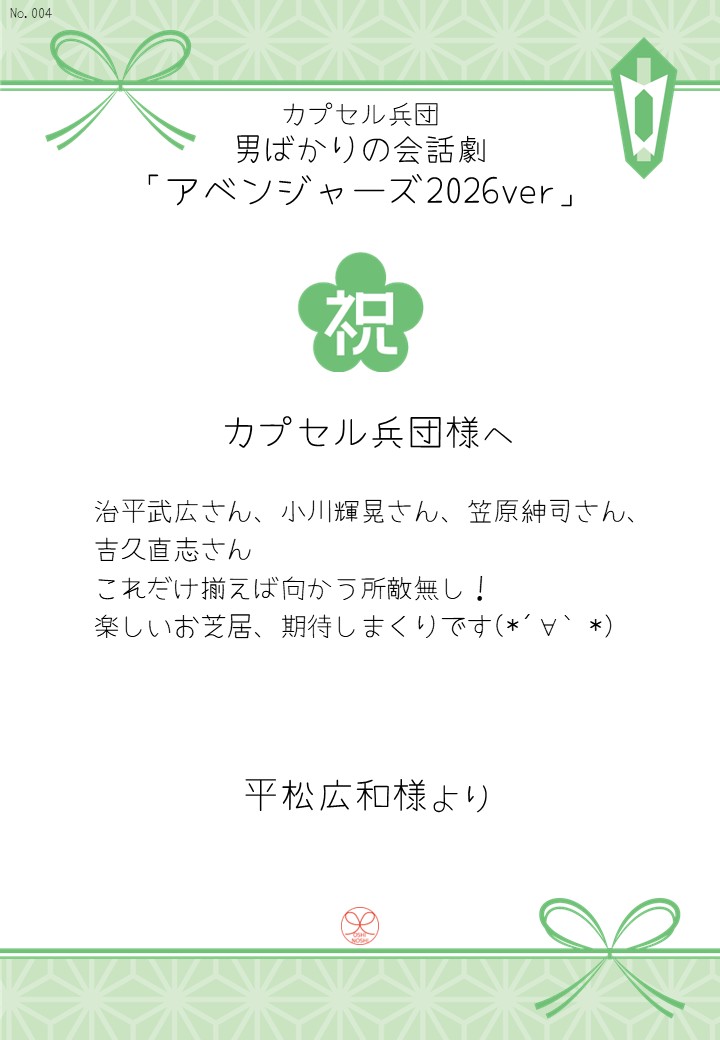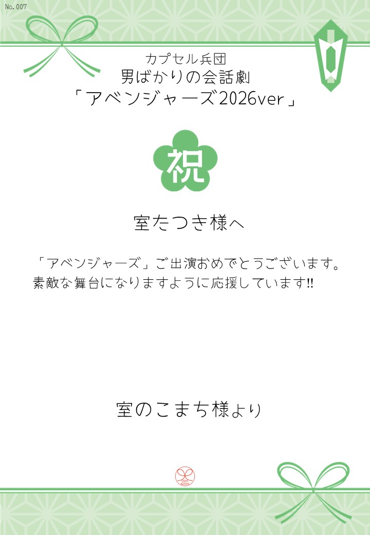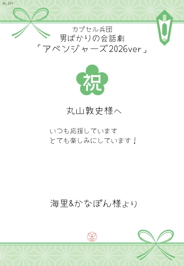 カプセル兵団 男ばかりの会話劇「アベンジャーズ2026ver」の応援のしを掲示します。