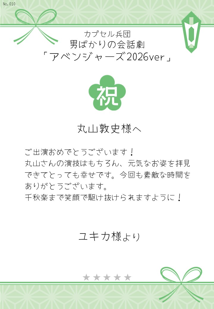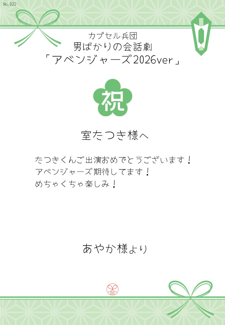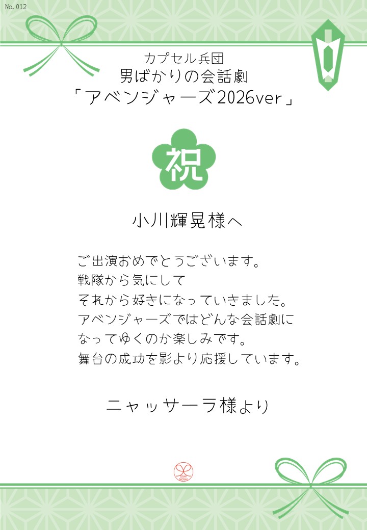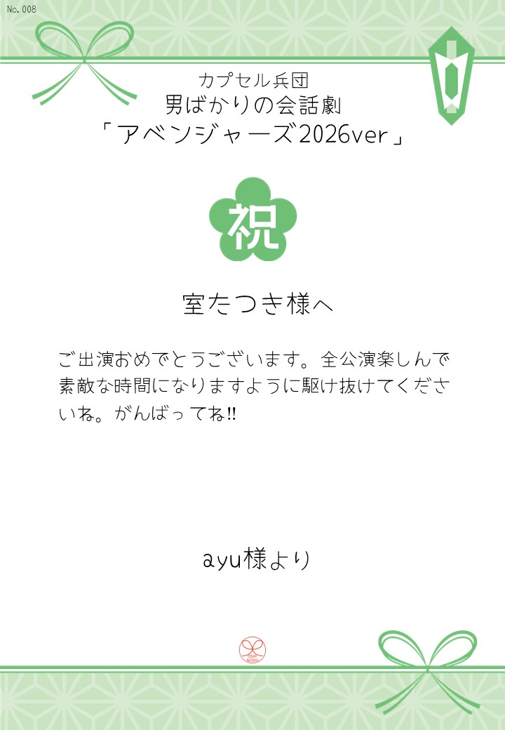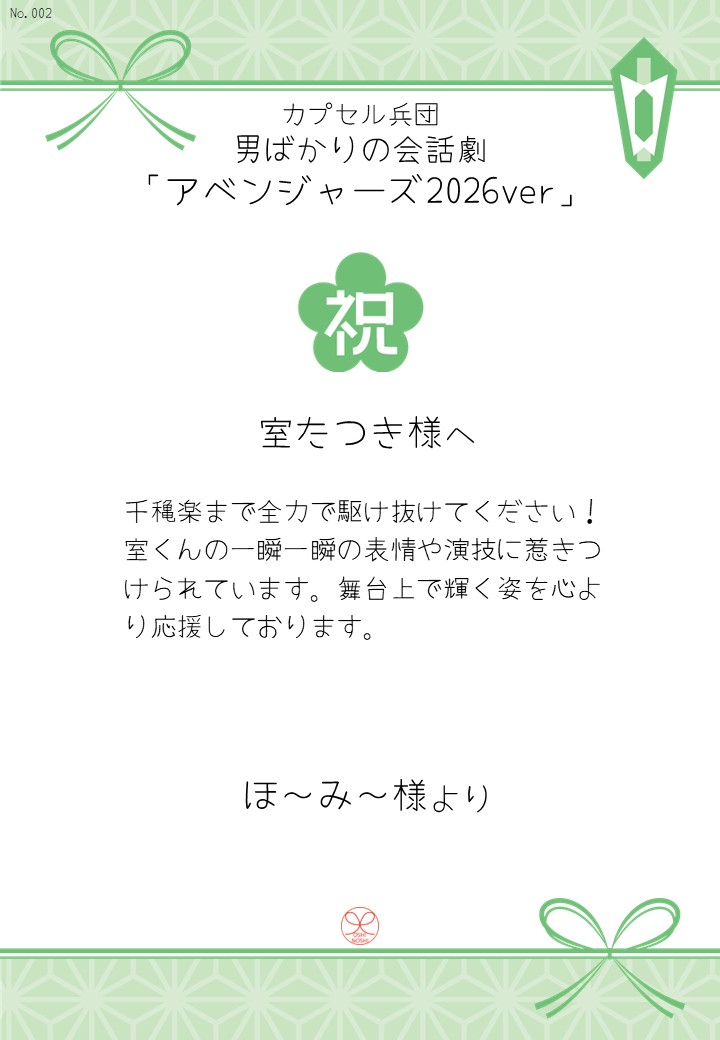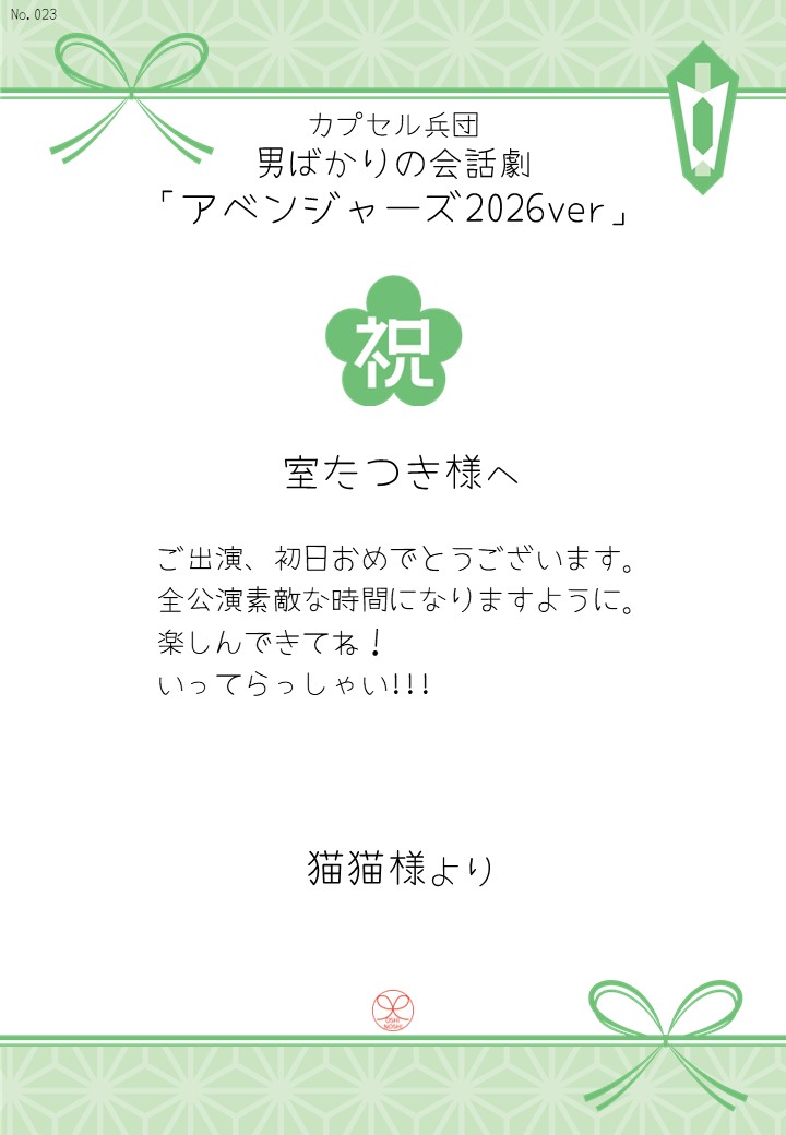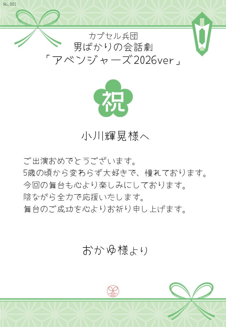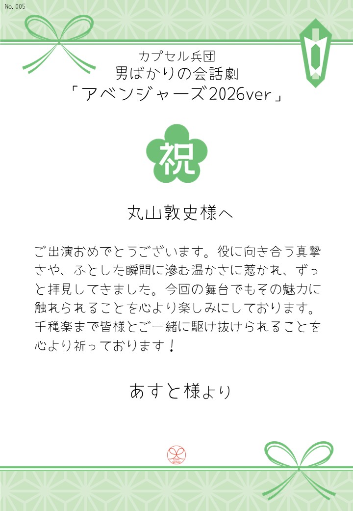 カプセル兵団 男ばかりの会話劇「アベンジャーズ2026ver」の応援のしを掲示します。