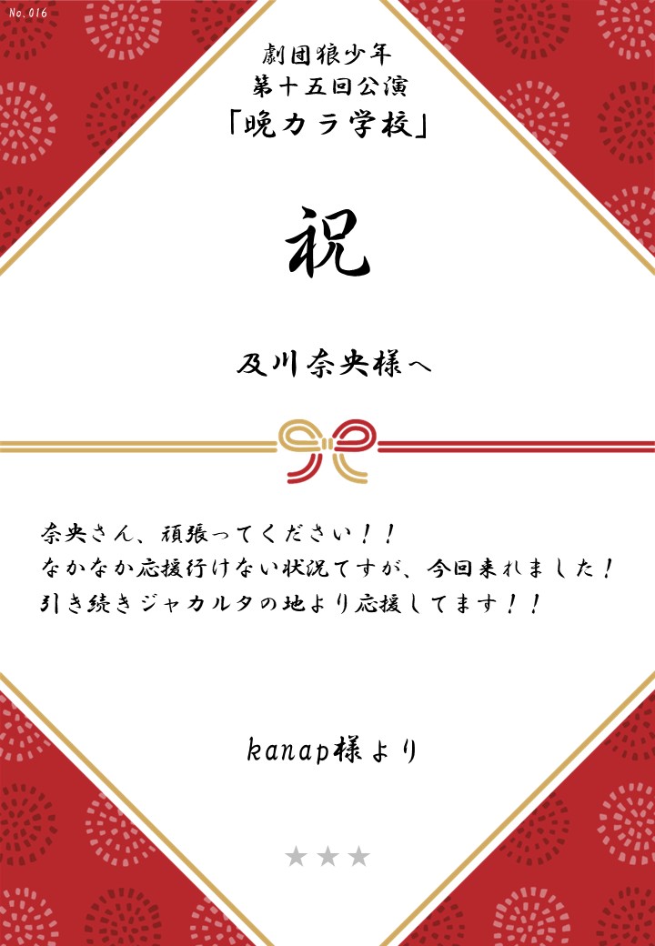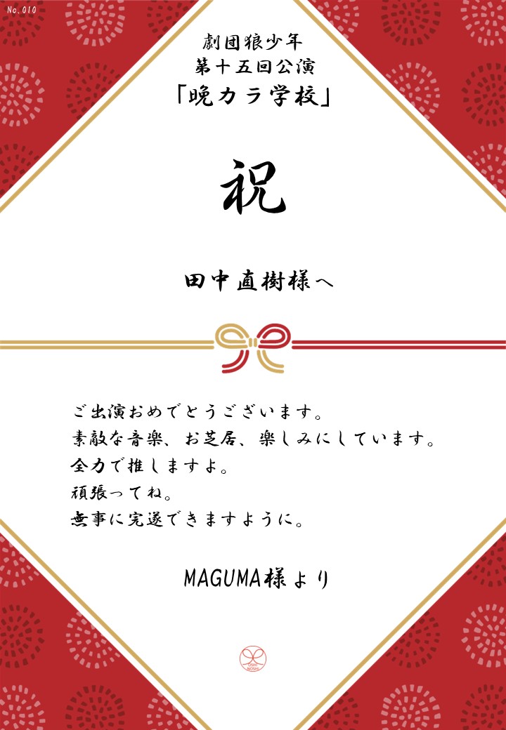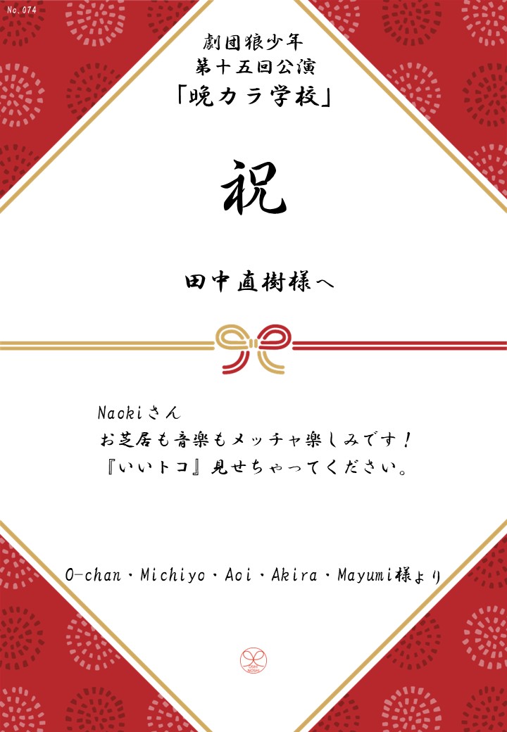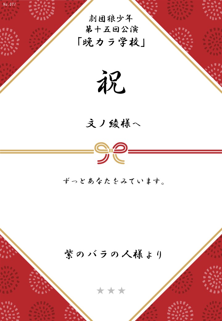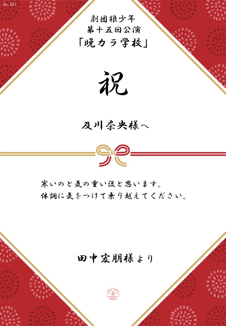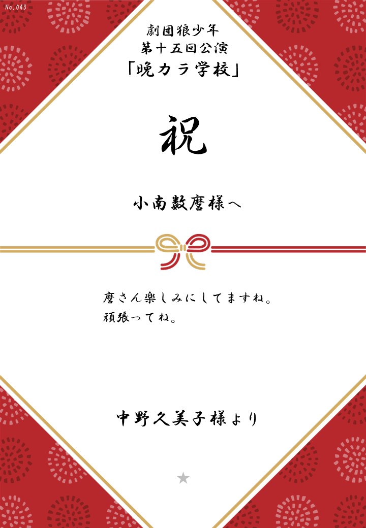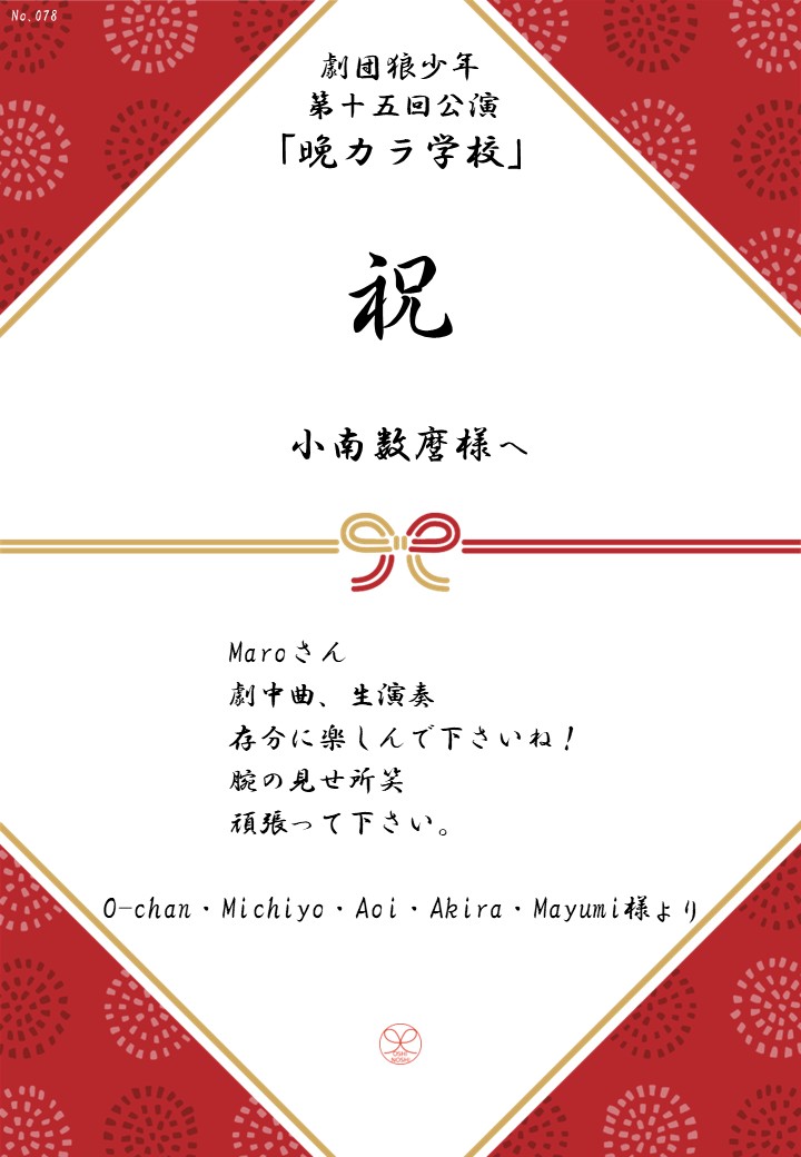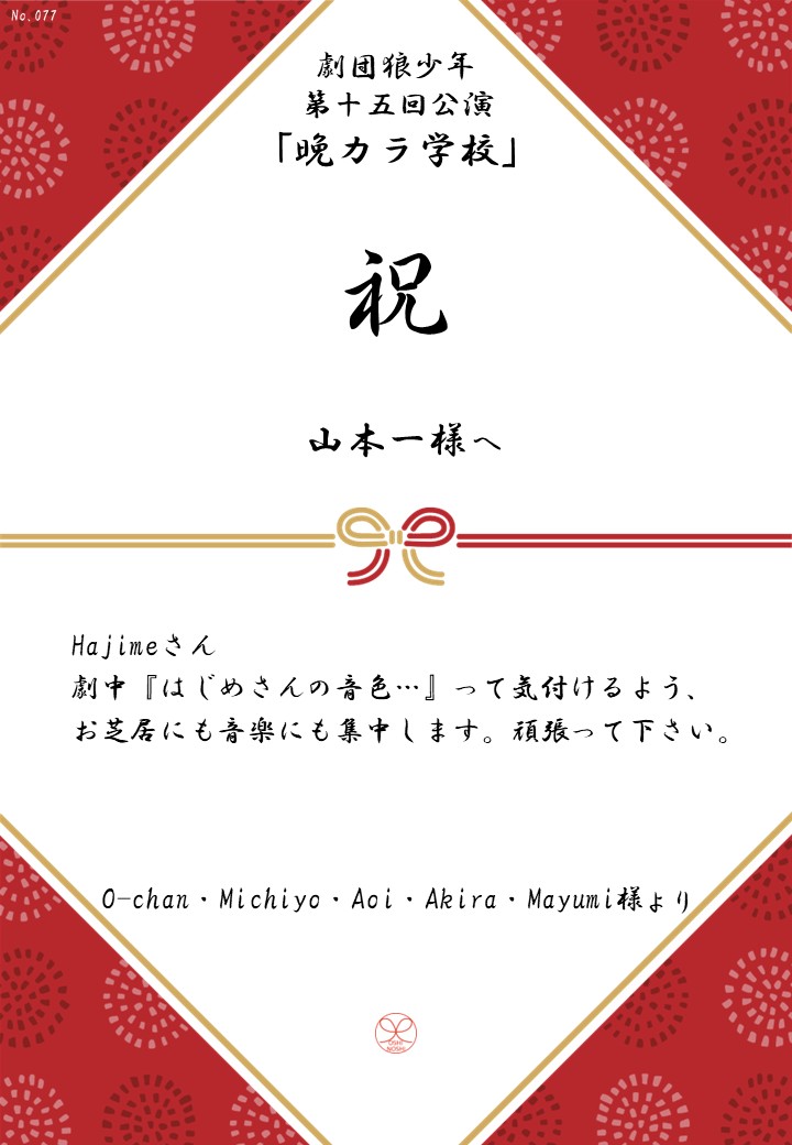 劇団狼少年 第十五回公演「晩カラ学校」応援のしギャラリー