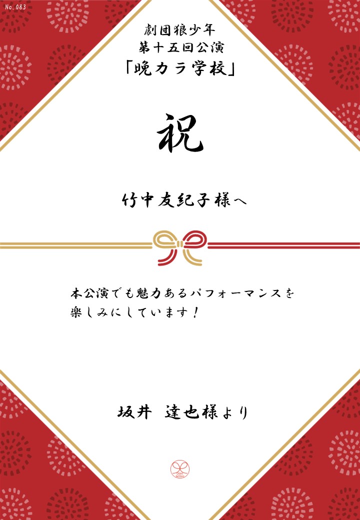 劇団狼少年 第十五回公演「晩カラ学校」応援のしギャラリー 投稿日 2026年1月23日 更新日 2026年2月10日 著者 OSHINOSHI ギャラリーカテゴリ 公演応援のしギャラリー 劇団狼少年 第十五回公演「晩カラ学校」の応援のしを掲示します。 応援のし申込み 公演詳細情報 応援のし一覧 \ 応援よろしくお願いします /おしのしを申込む