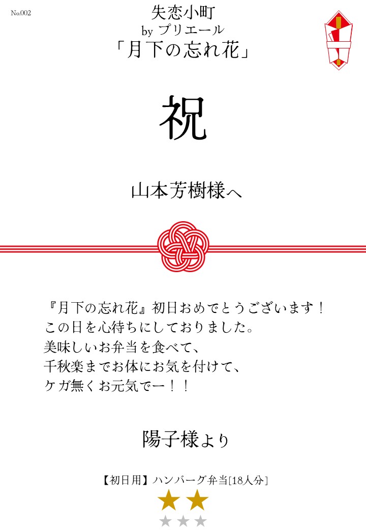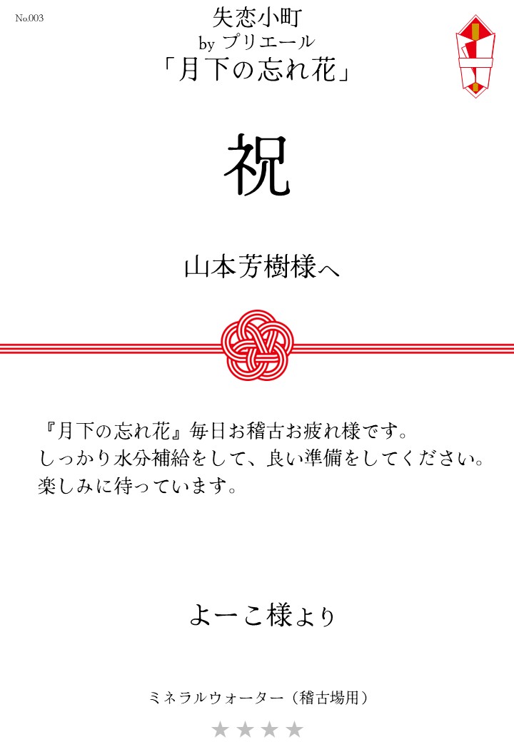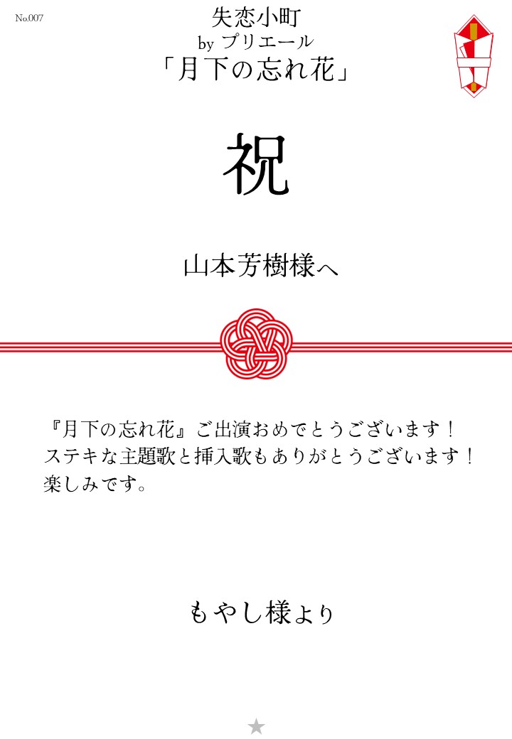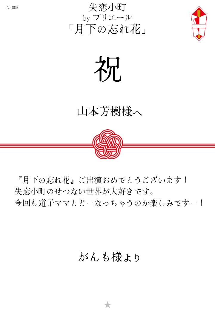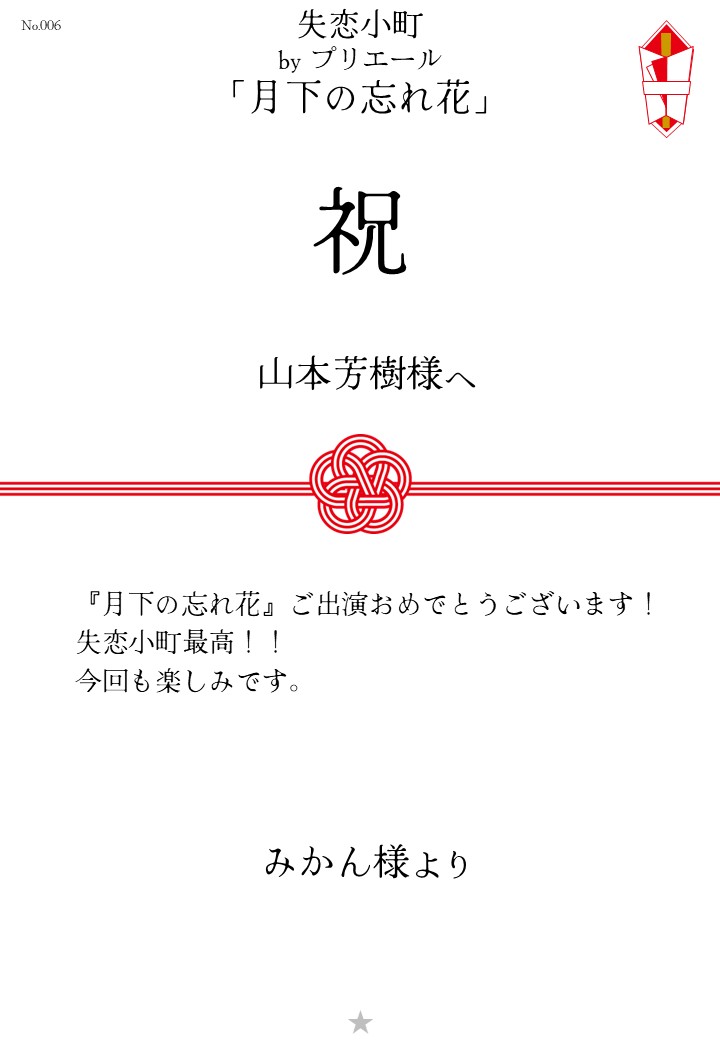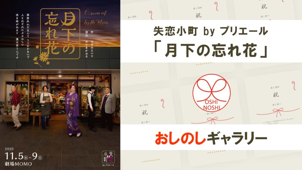 失恋小町 byプリエール「月下の忘れ花」おしのしギャラリー 投稿日 2025年9月29日 更新日 2025年10月10日 著者 OSHINOSHI ギャラリーカテゴリ 公演応援のしギャラリー 失恋小町 byプリエール「月下の忘れ花」のおしのしを掲示します。 おしのし申込み 公演詳細情報 おしのし一覧 応援のし募集中です。 \ 応援よろしくお願いします /おしのしを申込む