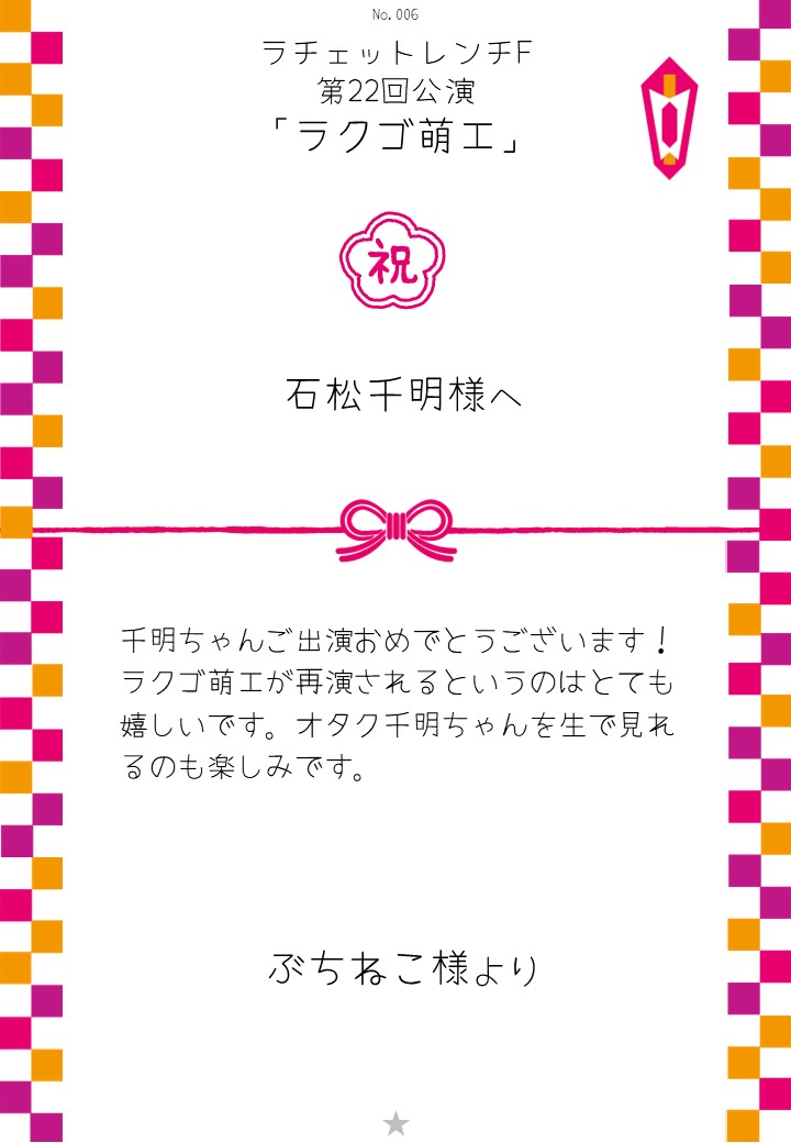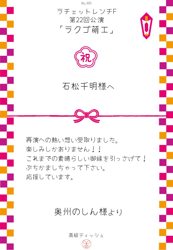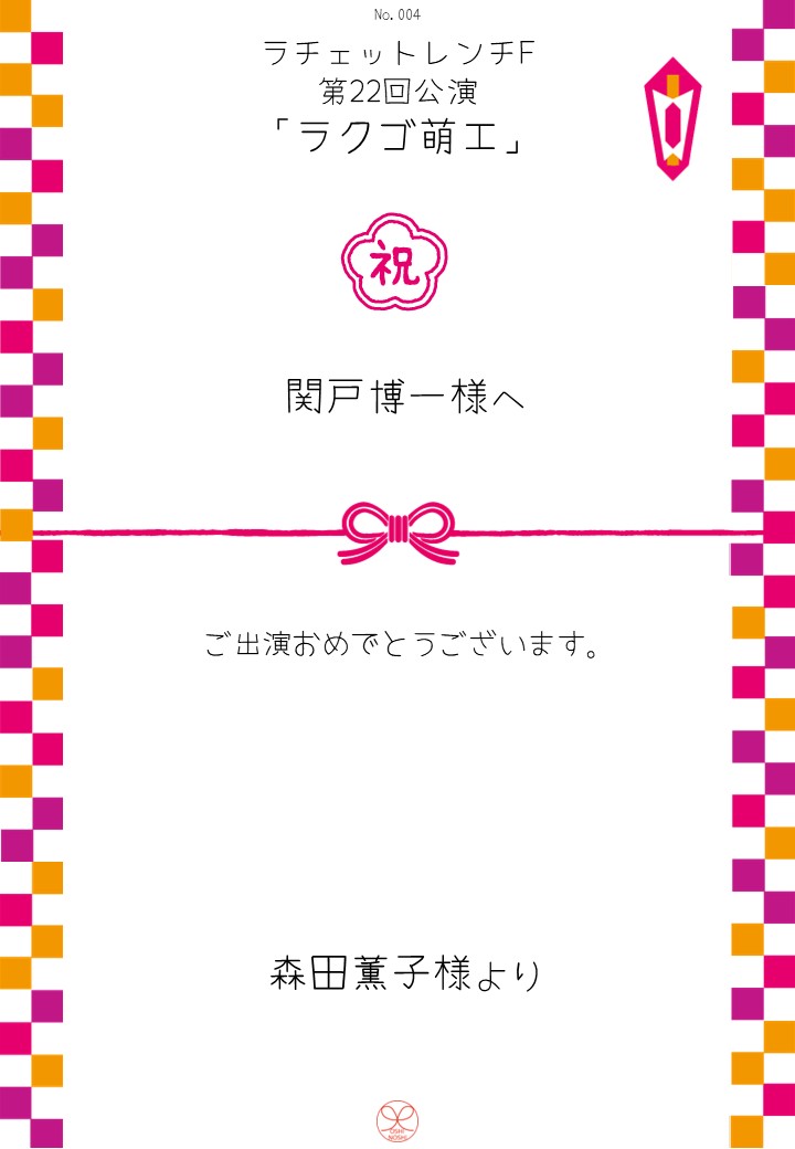 ラチェットレンチF 第22回公演「ラクゴ萌エ」おしのしギャラリー 投稿日 2026年3月10日 更新日 2026年4月9日 著者 OSHINOSHI ギャラリーカテゴリ 公演応援のしギャラリー ラチェットレンチF 第22回公演「ラクゴ萌エ」のおしのしを掲示します。 おしのし申込み 公演詳細情報 おしのし一覧 \ 応援よろしくお願いします /おしのしを申込む