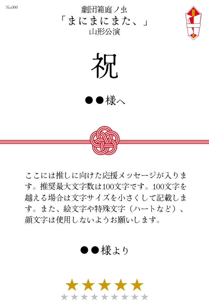 劇団箱庭ノ虫「まにまにまた、」山形公演 応援のし
